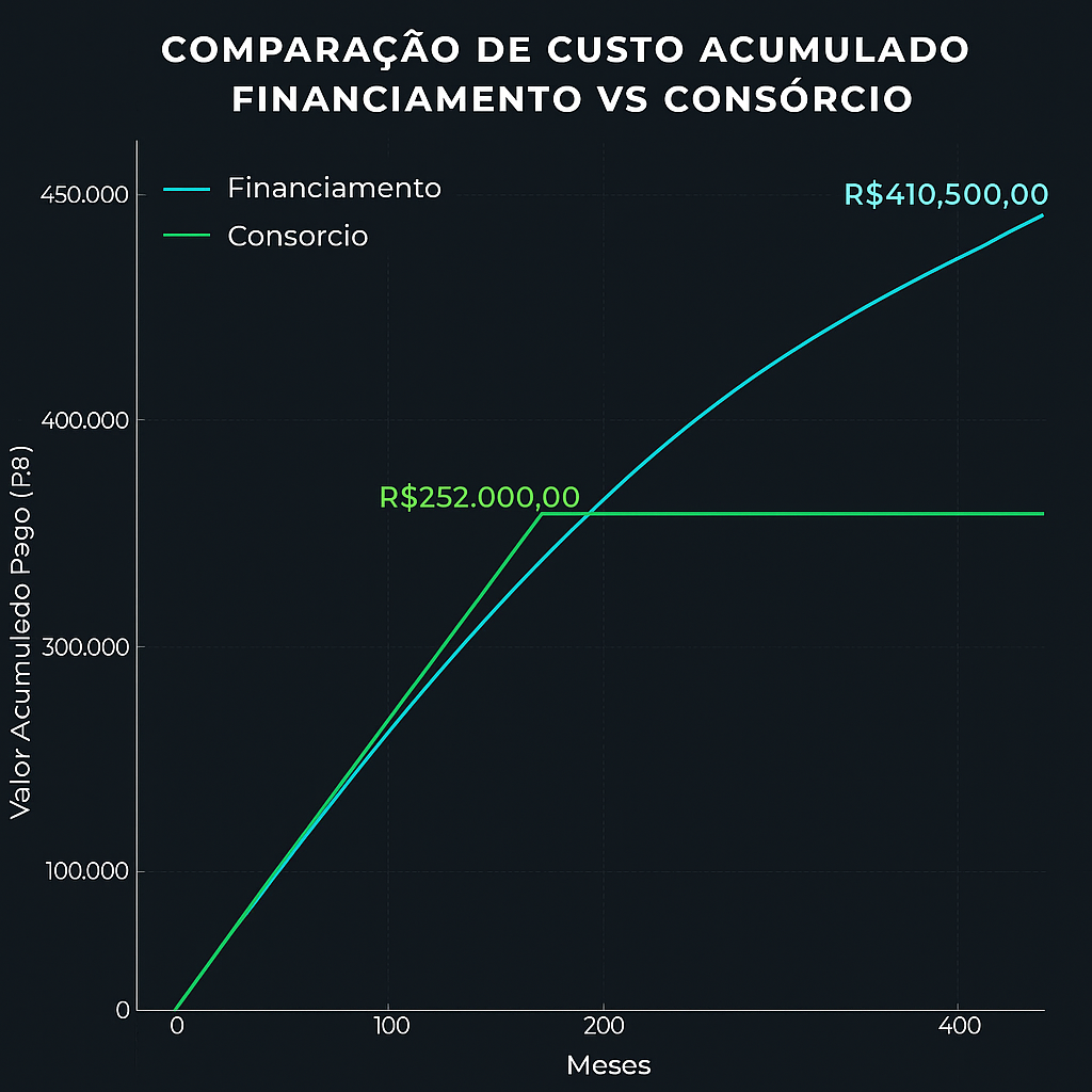 O financiamento explora a urgência. Ele entrega o bem imediatamente em troca de um custo altíssimo (os juros). O banco lucra com a sua pressa.